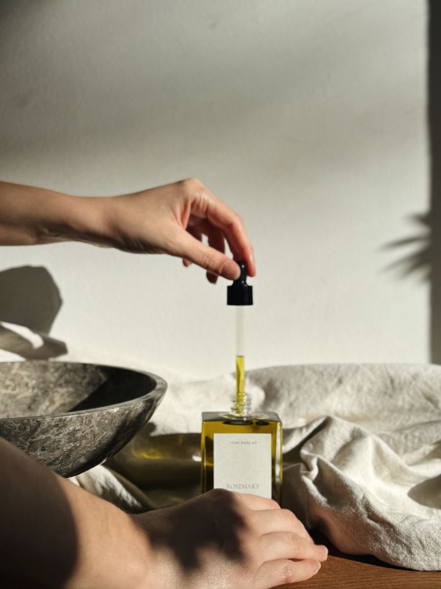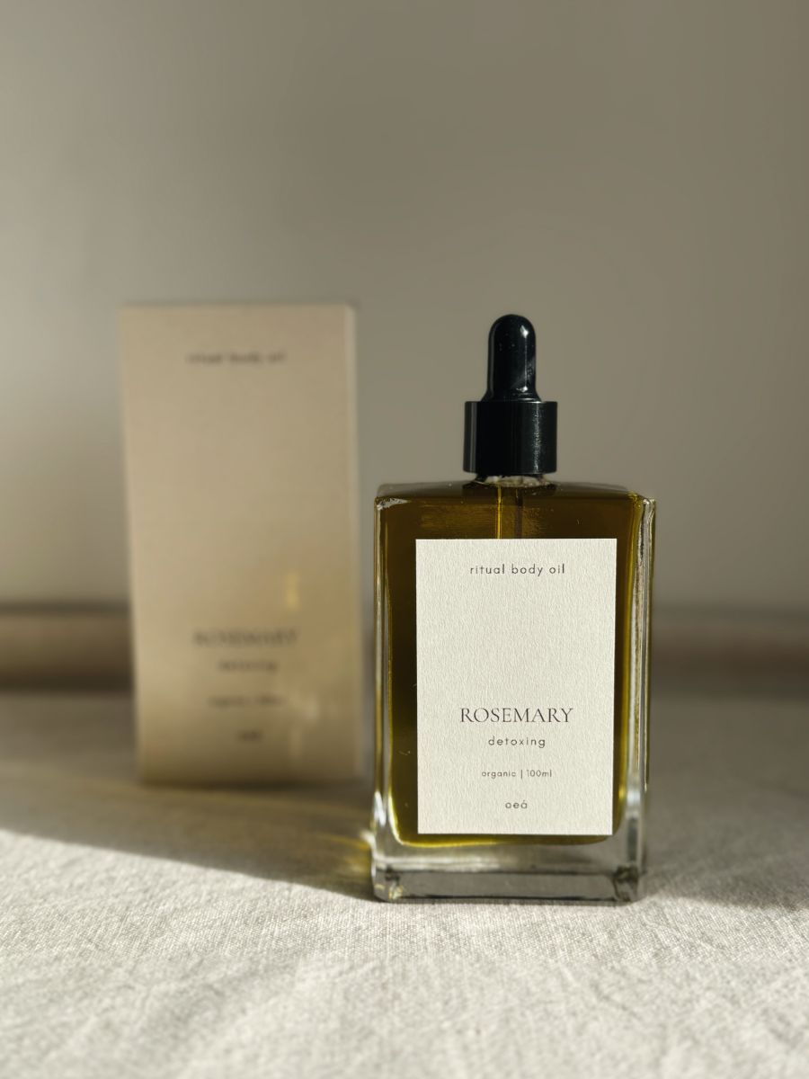 Das ROSEMARY Ritual Body Oil vereint wertvolle Pflanzenöle wie Jojoba, Argan und Mandel mit der frischen, belebenden Kraft von Rosmarin und Grapefruit. Es zieht schnell ein, unterstützt die Regeneration, schützt die Hautbarriere und hinterlässt ein Gefühl von Leichtigkeit – ideal, um Wintermüdigkeit und trockener Haut vorzubeugen.