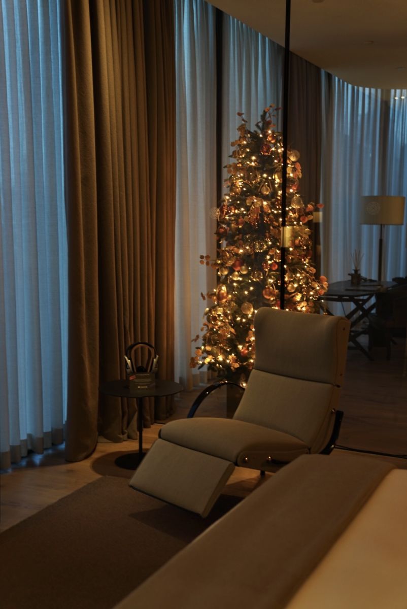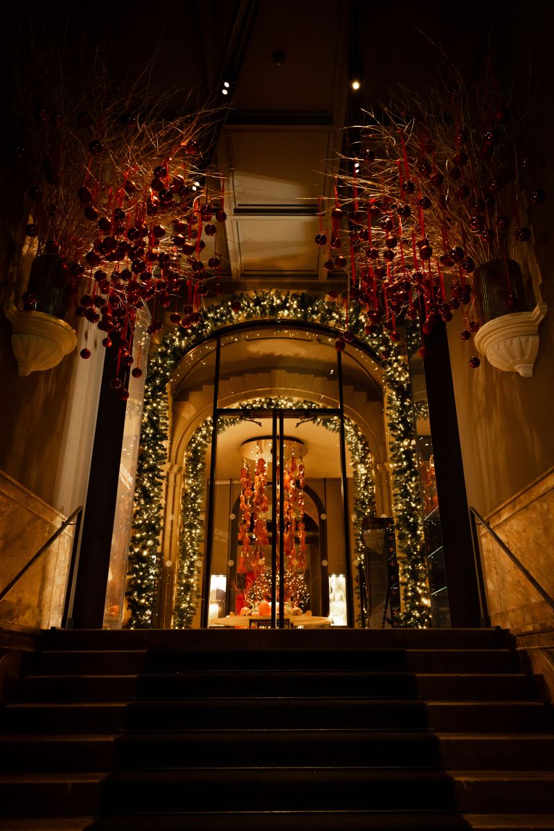 Das Highlight in diesem Winter: Ein viereinhalb Meter hoher Weihnachtsbaum, erstmals gestaltet von Pasquale Bruni, erstrahlt in der gläsernen Lobby. Mit roten und zartrosa Samtblüten, goldenen Akzenten und schimmernden Lichtern setzt der Baum einen funkelnden Akzent, der Kinderaugen und Erwachsene gleichermaßen zum Leuchten bringt.