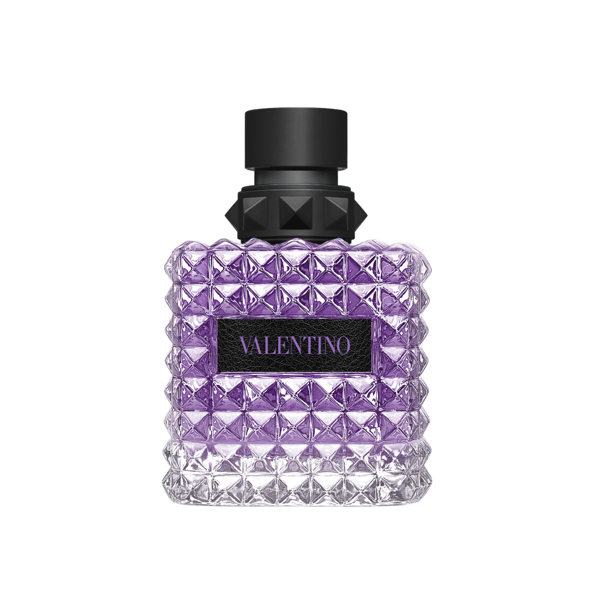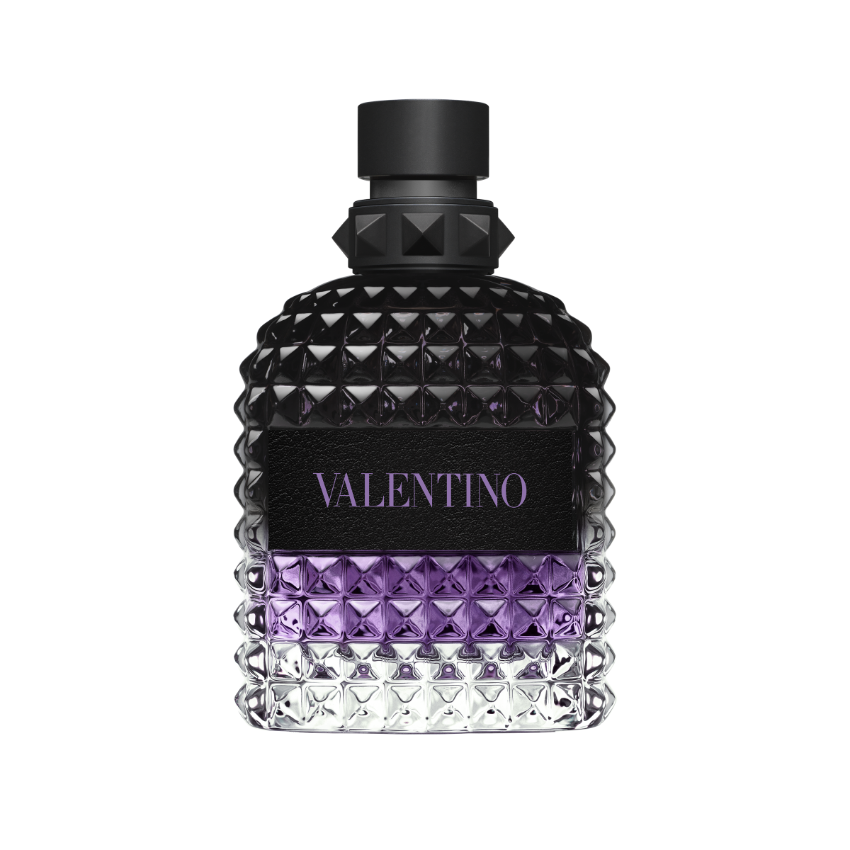 Der charakteristische Flakon ist eine Hommage an Valentinos ikonische Rockstuds. Das pyramidenförmige Design vereint schwarzes Leder mit melancholischem Purpurviolett und spielt mit Kontrasten aus Stärke und Emotion.