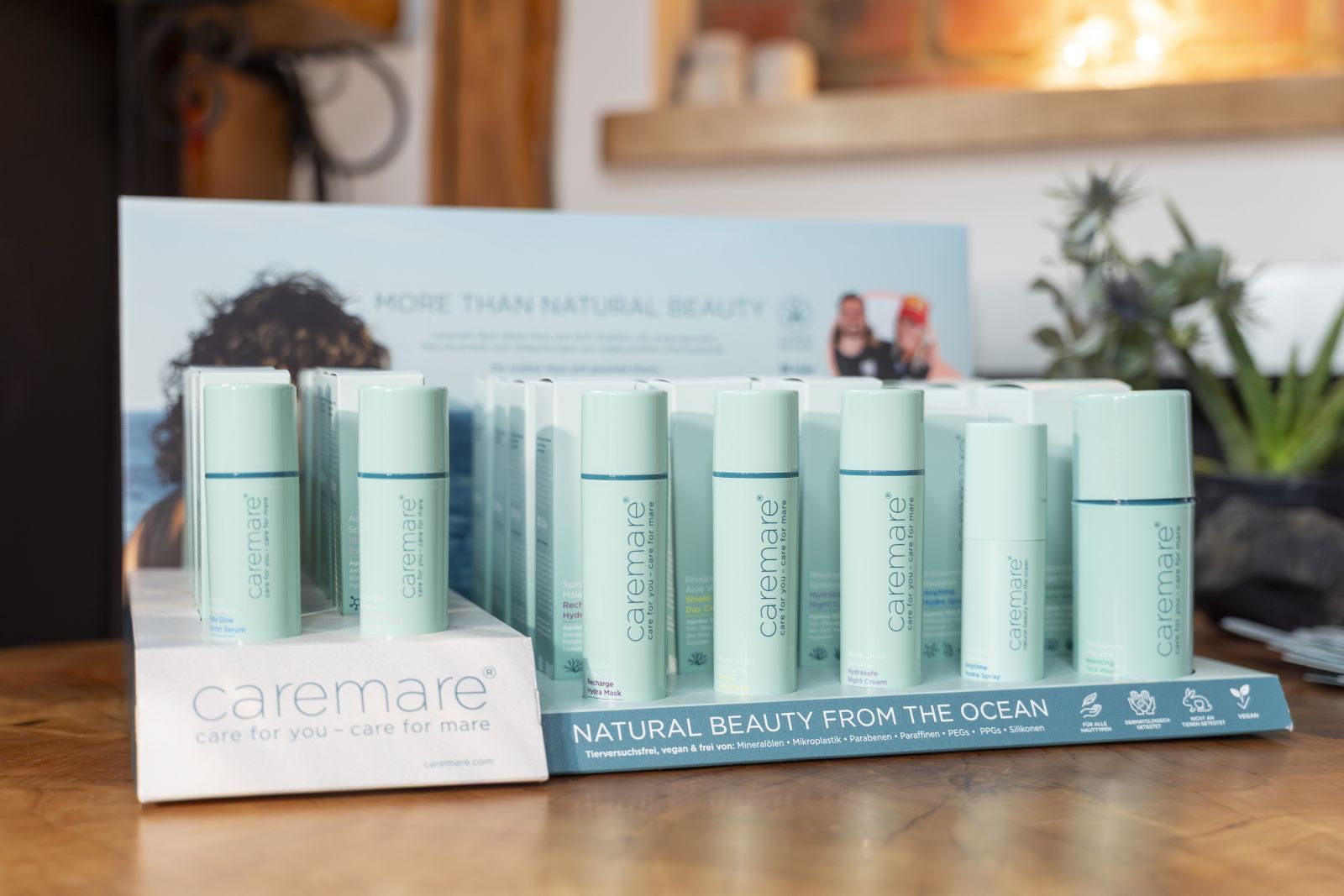 Auch visuell überzeugte der Launch mit einer klaren Linie. Die Packaging-Ästhetik in sanften Meeresnuancen wirkte modern, fast skandinavisch reduziert – und transportierte zugleich eine wichtige Botschaft: Nachhaltigkeit als Designprinzip. Die Verpackungen bestehen überwiegend aus recyceltem Ocean-bound Plastic und zeigen, dass Verantwortung heute Teil von Luxus sein kann, ohne dabei an Eleganz zu verlieren. In vielen Gesprächen wurde deutlich, dass caremare nicht nur Hautpflege schaffen möchte, sondern ein neues Verständnis von Beauty – bewusst, wirksam und nahbar.