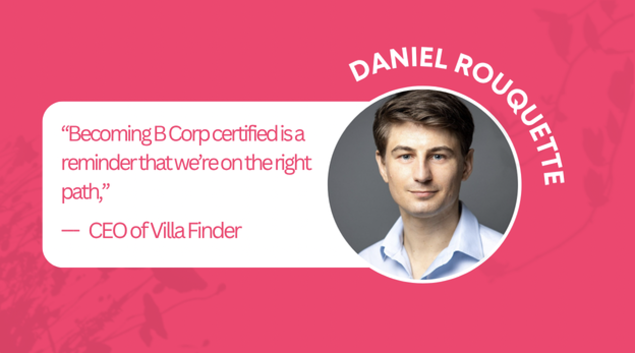 “Great holidays and responsible business can truly go hand in hand,” says Daniel Rouquette, CEO of Villa Finder. “Being B Corp certified reminds us we’re on the right path—and challenges us to keep improving and showing what travel can achieve when it’s done with heart.”