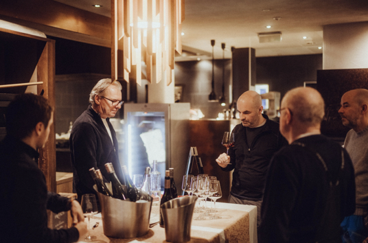 Vor dem Dinner kommen alle zusammen an der Bar. Hier treffen Philosophie, Herkunft & Handschrift der teilnehmenden Weingüter direkt auf neugierige See(le)n – und die ersten Kostproben fließen sanft in den Abend. Wer seinen Favoriten mit nach Hause nehmen möchte, kann ihn vor Ort erwerben.