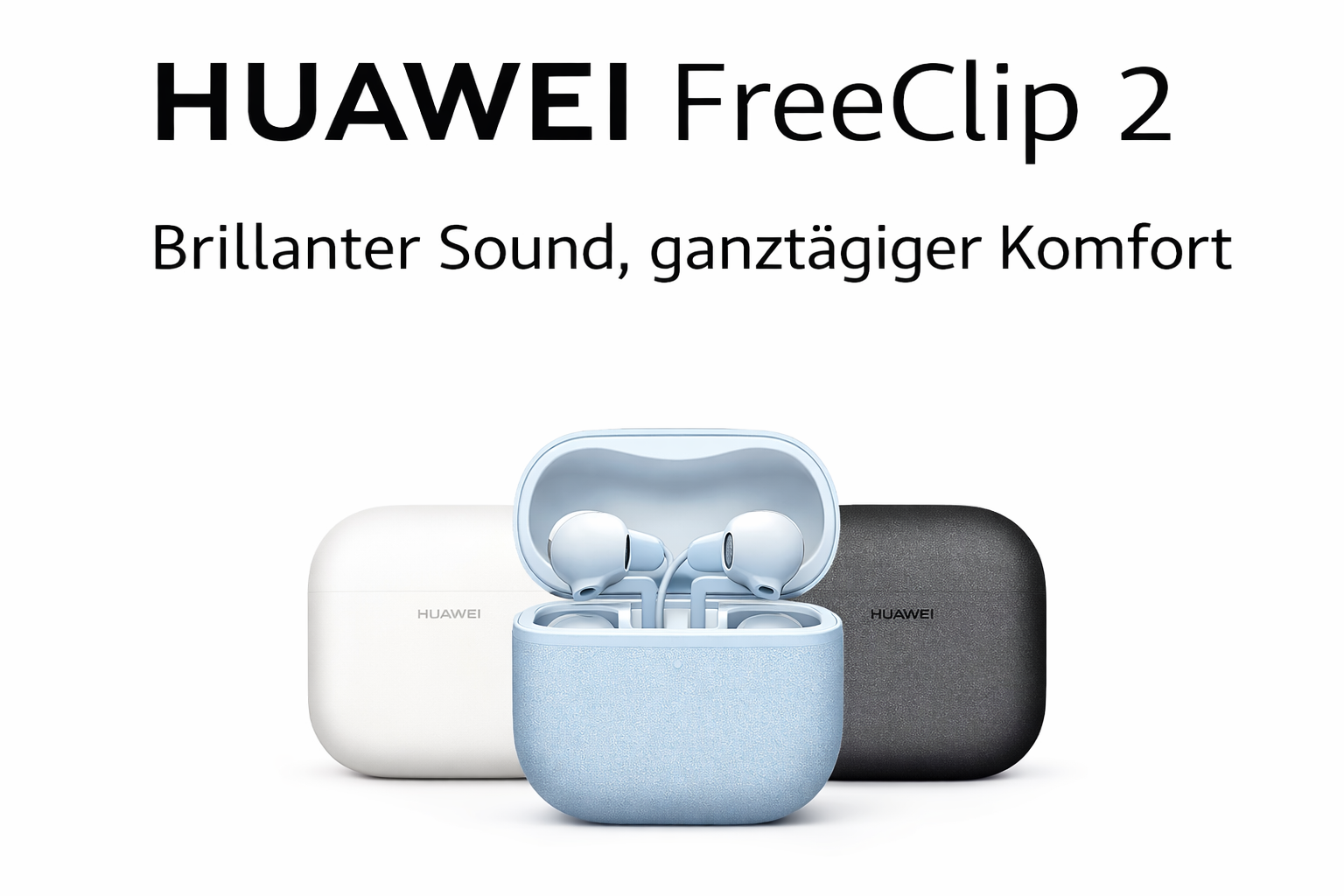 HUAWEI stellt heute mit den HUAWEI FreeClip 2 sein neuestes True-Wireless-Audioprodukt vor und hebt offenen Hörkomfort auf ein neues Level. Aufbauend auf der innovativen C-Bridge-Architektur der Vorgängergeneration verbinden die FreeClip 2 modernes Design mit fortschrittlicher Audiotechnologie – für ein Hörerlebnis, das sich mühelos in jeden Alltag einfügt.