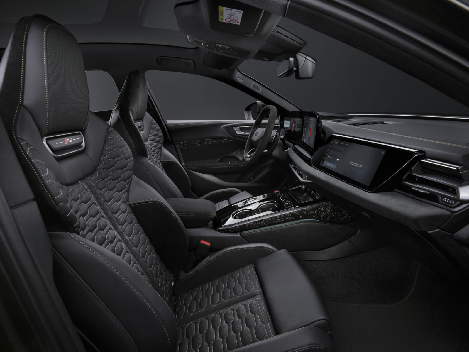 Auch im Innenraum trifft Performance auf progressive Eleganz. Hochwertige Materialien, RS-spezifische Details und optional das Audi Sport Paket mit serpentingrünen Kontrastnähten, messingfarbenen Akzenten und exklusiven Designelementen schaffen ein Umfeld, das Dynamik spürbar macht. Große 20- und 21-Zoll-Räder, leistungsstarke Stahl- oder Keramikbremsanlagen sowie das fein abgestimmte RS-Sportfahrwerk mit 2-Ventil-Dämpfer-Technologie sorgen für kompromisslose Kontrolle.